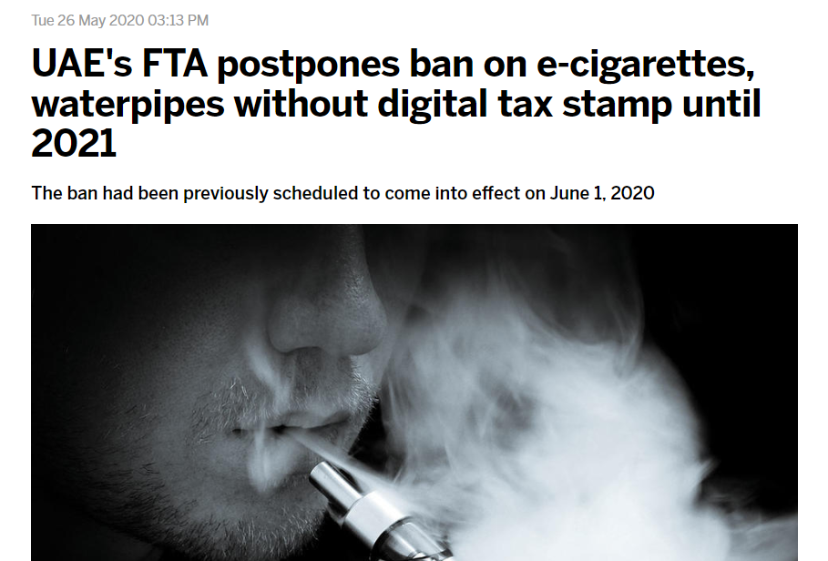 而阿联酋庞大的吸烟人口成为了电子烟消费的主力军,阿联酋于5月27日已决定将禁止在阿联酋国内供应/转让/储存没有数字税票的水烟和电子烟的禁令实施时间推迟到2021年1月1日。