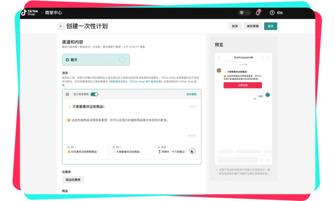 步骤四:编辑优惠券(可选)和商品信息