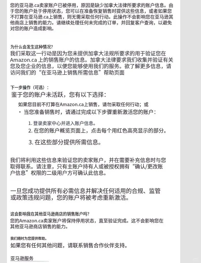近日多位卖家反馈,亚马逊突然停用了大量巴西站及加拿大站账户。截至目前,仍有部分卖家陆续收到类似邮件通知。