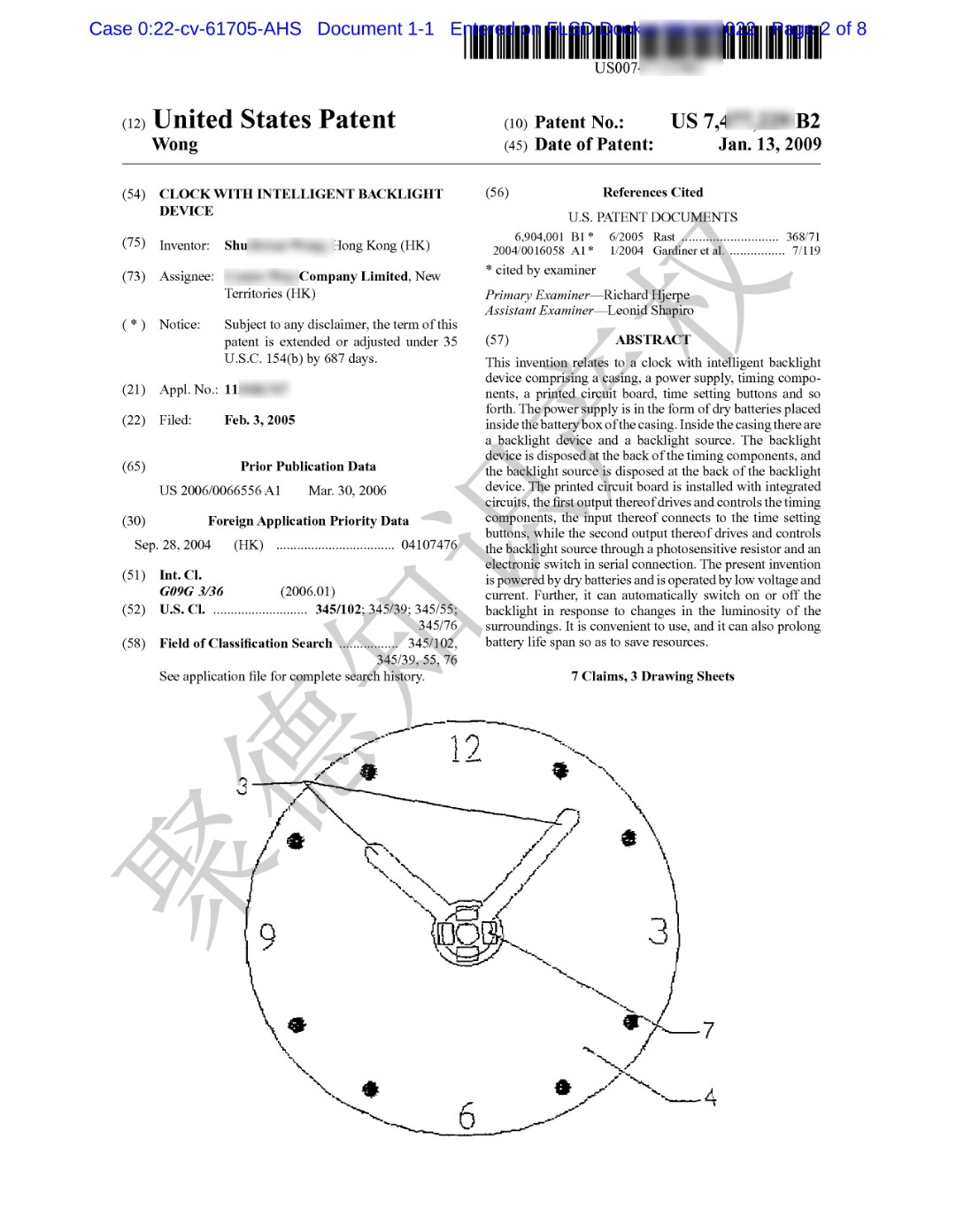 带有智能背光装置的时钟,美国专利侵权预警