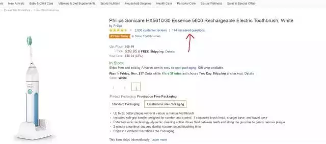 此外,如下图产品,在“electric toothbrush”里排名第一,因为它比改类目其他相近的Best-Seller多几乎两倍的Q&A。