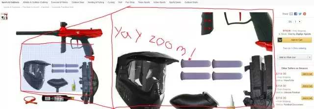 请注意,图片数量在这里没有那么重要。比如Tippmann paintball gun关键词“paintball guns”排名第一,但是只有一张图片。只要图片足够大,信息量足够全,可以让买家看到所有需要的信息,亚马逊就会很高兴的。