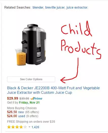 如果你回到原来页面,你可以看到这个产品是在排名前四的产品中唯一有变体的。当你使用变体关系的时候,亚马逊搜索结果上会有一个额外的选项。