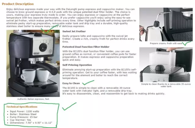 如果你想看一个真实案例的话,看看这个”Delhongi Espresso Maker”