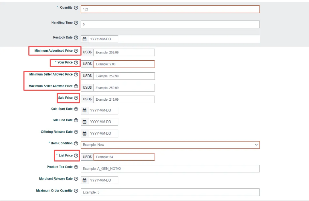 3.卖家允许的最低/最高价格(Minimum/Maximum Seller Allowed Price):只给自动定价用