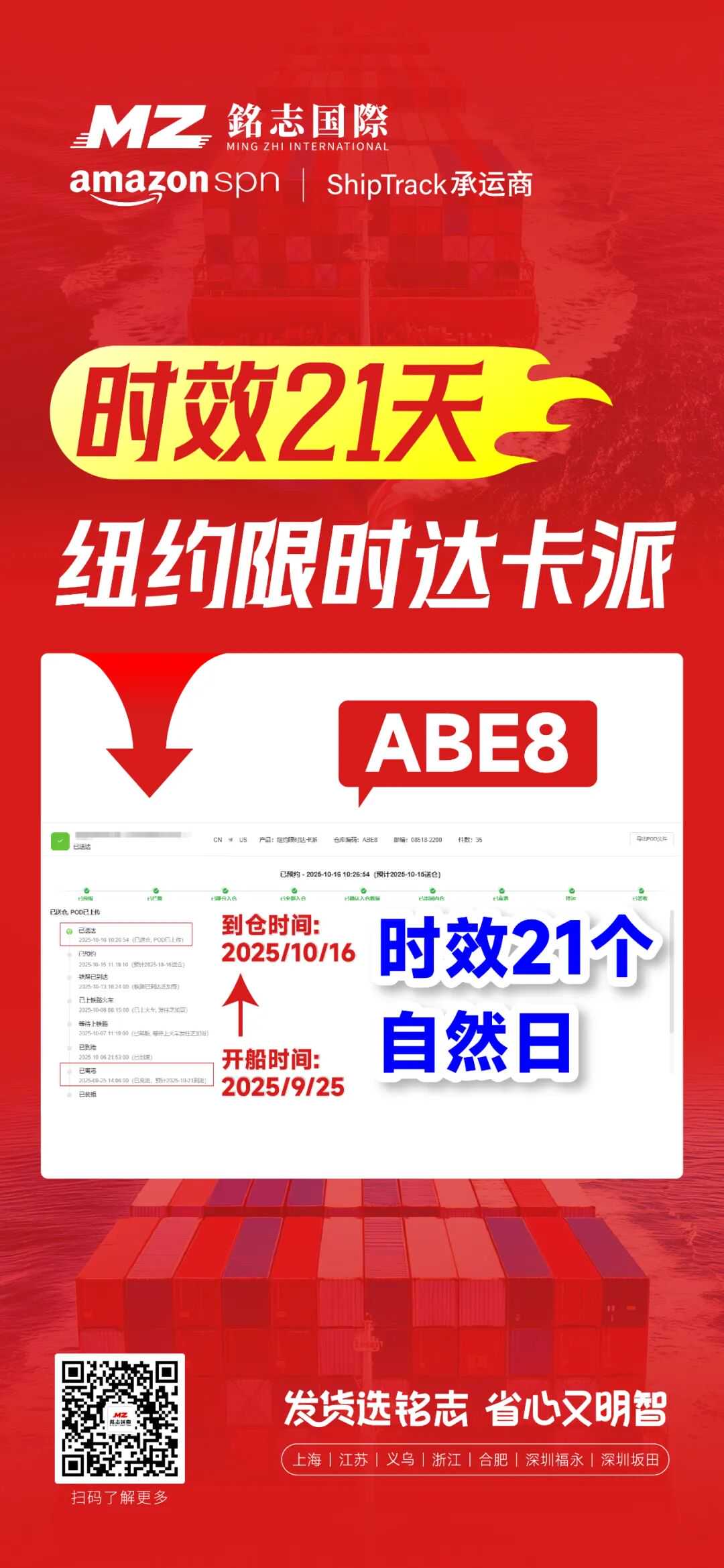 如果你的货是发往美东仓库,铭志最新上线的纽约快速达,时效做的也非常不错,海铁联运模式,最快21天就可以上架签收。