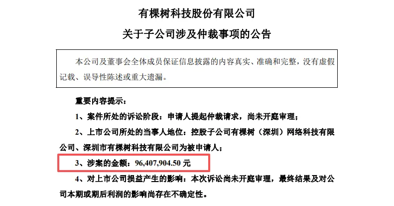 1月9日,跨境电商知名上市企业有棵树发布的一则仲裁公告,再次将这家昔日巨头推向舆论风口。