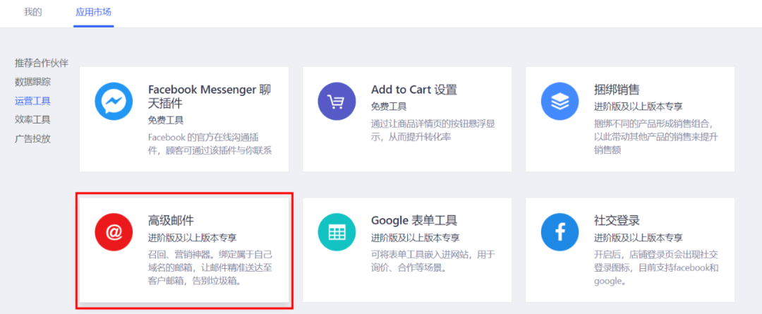 以 Shoplazza 店匠后台为例,通过开启“高级邮箱”插件,商家可绑定自有域名,实现邮件精准送达用户邮箱,免去进入垃圾邮件列表的烦恼。