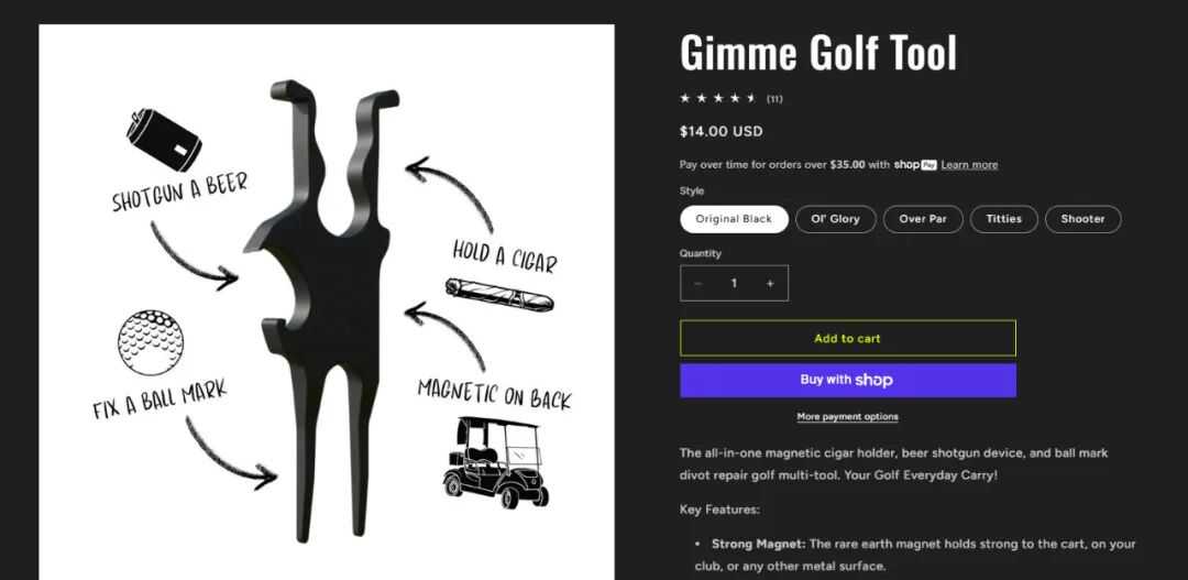 Gimme Golf Tool LLC旗下高尔夫配件是一款兼具实用与格调的配件,专为喜欢在打球时喝点啤酒、抽根雪茄的朋友设计。它的诞生特别实在,就是创始人自己和球友们在球场上遇到的麻烦:开罐瓶老费劲,雪茄没地儿放怕掉,还得随时修修打球留下的痕迹。市面上找不到一个工具能同时搞定这三件事,于是他们就自己发明了一个。