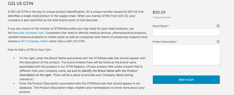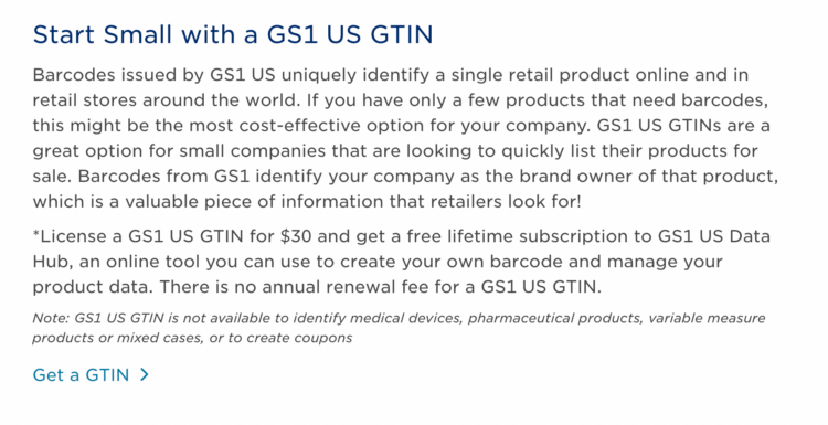 现在,你可以从GS1购买一个单一的UPC,只需30美元,而且没有年费。对于那些刚刚起步并一次推出一个产品的企业来说,这是性价比非常高的选择。
