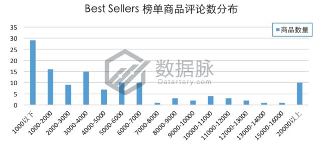 在上周登榜Cell Phones & Accessories品类Best Sellers榜单的商品中,单个商品拥有的最大评论数为55115.0条,最小评论数为3.0条,平均评论数7412.99条,评论平均星级4.24星。骆探长(shujumai.com)发现,平均评论数大幅度上涨,平均星级增长了0.04星;在上榜商品中,有21.97%的商品评论数少于1000条,另有12.12%的商品评论数在1000条至2000条之间。此外,上周共有10款商品的评论数在20000条以上,占上榜商品数的7.58%。