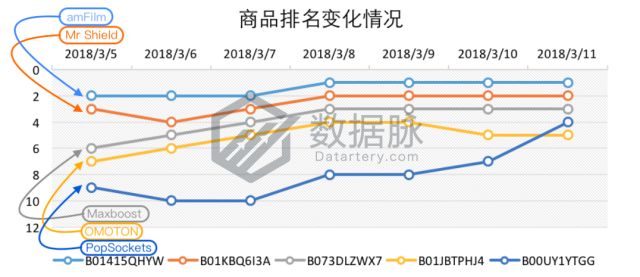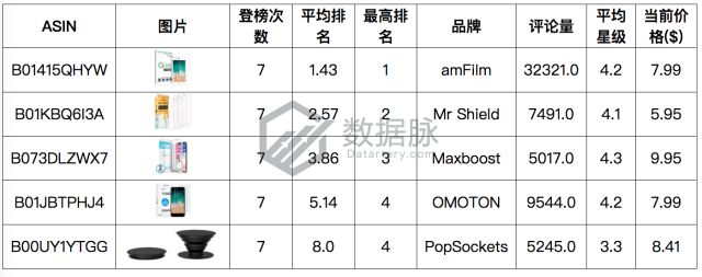 此外骆探长(shujumai.com)发现,品牌PopSockets的气囊手机支架再次顶着平均星级3.3星的压力,榜单排名稳定上升,最后一日进入榜单前五,以平均排名8.0,位列商品综合排名第五。