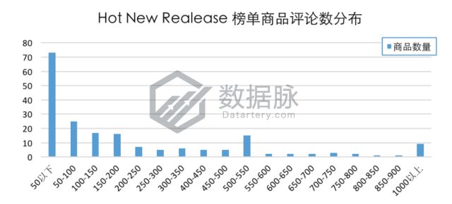 在上周登榜Cell Phones & Accessories品类Hot New Releases榜单的商品中,单个商品拥有的最大评论数为2659.0,最小评论数为0.0条,平均评论数237.47 条,评论平均星级4.35星。骆探长(shujumai.com)注意到,平均评论数有一定幅度下降,但平均星级增加0.16星;其中,评论数在50条以内的商品最多,占比达35.44%;此外,有约12.14%的商品评论数在50条至100条之间;共有9款登榜商品的评论数超过了1000条,占比达4.37%。