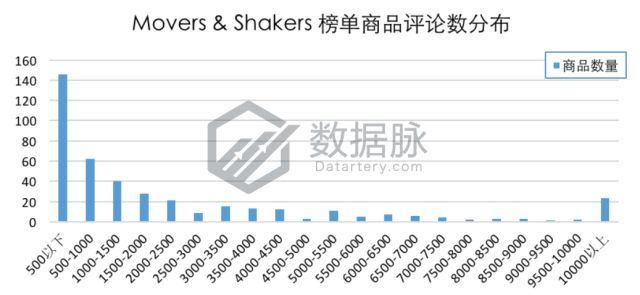在上周登榜Cell Phones & Accessories品类Movers & Shakers榜单的商品中,单个商品拥有的最大评论数为55115.0条,最小评论数为0.0条,平均评论数3075.67条,评论平均星级4.28星。在榜单的上榜商品中,较多商品的评论数在500条以下,占比高达33.64%;有14.29%的商品评论数位于500条至1000条内;此外,多达23款商品的评论数超过10000条,占上榜商品总数的5.30%;骆探长(shujumai.com)发现,相比于上期分析,平均评论数有一定程度下滑,平均星级增加了0.07星,市场口碑进一步提高。