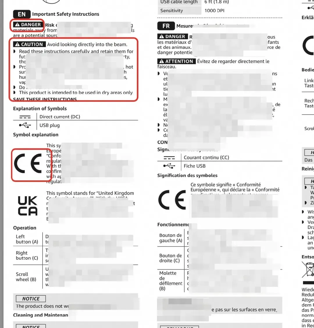 ✰合规标识:如适用,CE Mark等相关合规标识必须出现在说明书上。