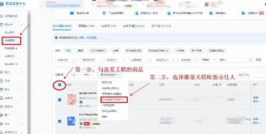 新增欧盟责任人审核通过后,还需要绑定到店铺内的商品,才算完成GPSR的合规要求,否则商品仍会被欧盟屏蔽。