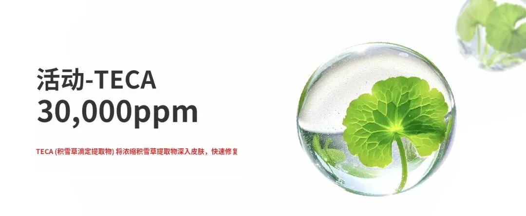 产品的核心竞争力在于其高达30,000ppm的活性TECA。积雪草素有“修复之王”的美誉,而TECA是其高浓度、高纯度的萃取形态。