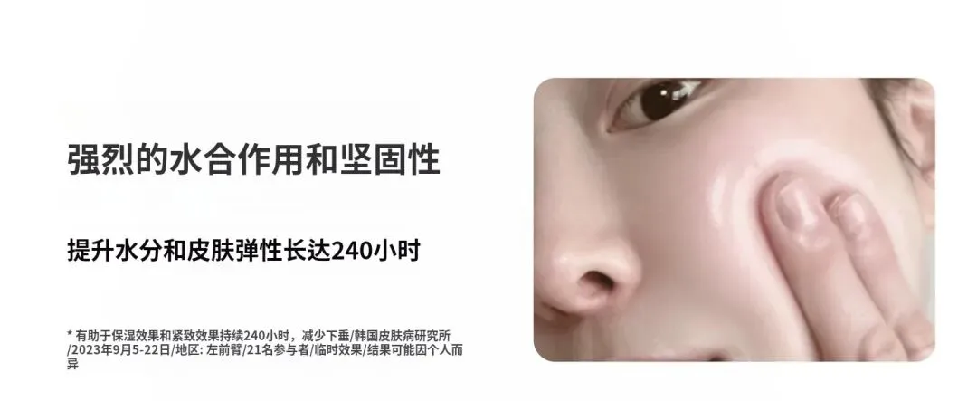 持久保湿与吸收:富含蛋白质的配方,能将水分和皮肤弹性提升长达240小时,并且吸收速度加快251%。