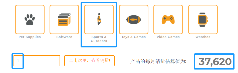 比如运动和户外大类(Sports & Outdoors)里,热销第一的产品月销量估算值超过37000件