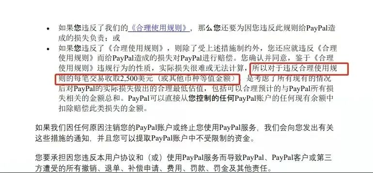 4.对PayPal进行赔偿。如果卖家违规导致损失,可能还要向PayPal赔偿,即按照交易笔数,每笔收取2500美元的违约金。