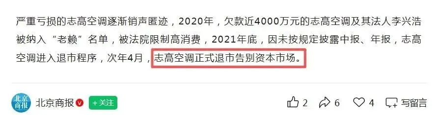 2018年志高控股亏损4.8亿元,2019年亏损扩大至14亿元,直接触发港交所停牌退市程序;2022年正式从港股退市。