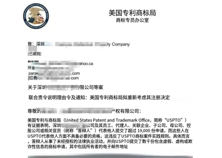 提供非申请人本人的邮箱作为联系地址,导致 USPTO 的审查意见、补正通知等关键文件被代理机构截留,卖家对商标申请进度毫不知情,甚至错过异议答辩、补正等关键节点。