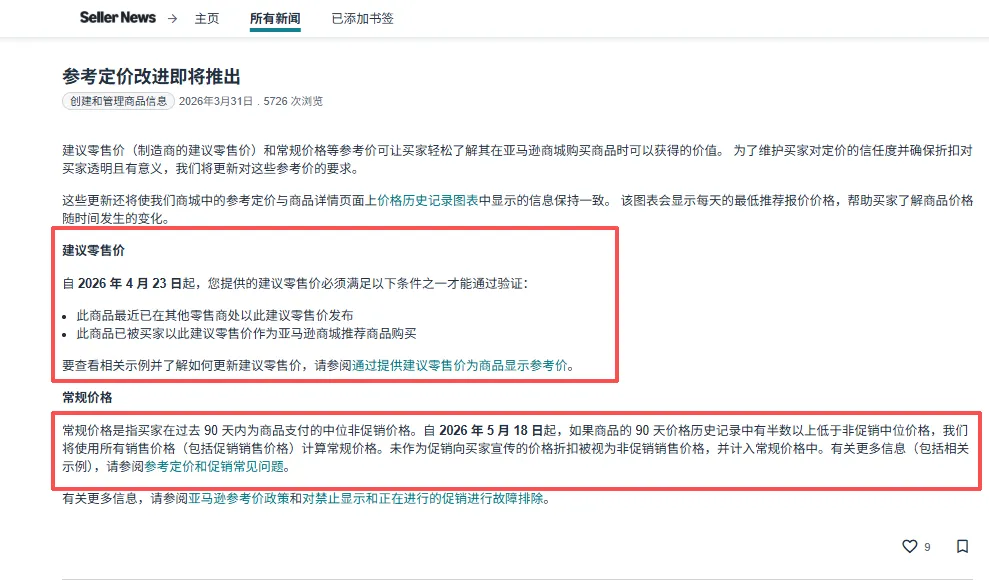 4月23日起,亚马逊更新参考价格新规,低价推新恐怕行不通了