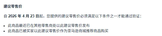 从4月23日起,卖家填写的建议零售价必须满足至少一个条件: