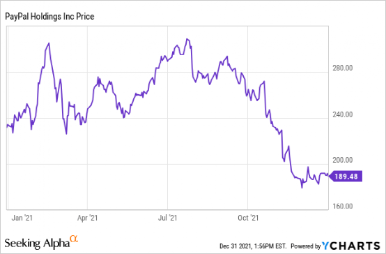 PayPal(PayPal)已经从高点下跌了40%,在2021年实现了负回报。