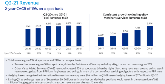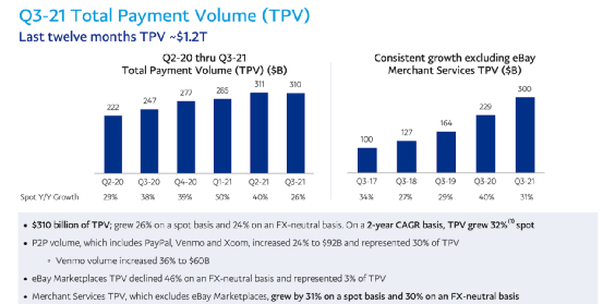 PYPL在总支付量方面持续走强,以26%的速度增长,如果不包括eBay,则增长31%。