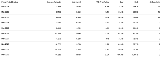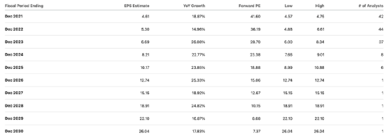 华尔街似乎同意,因为他们预测未来十年的盈利复合增长率接近20%。