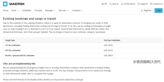 风浪越大鱼越贵!马士基不终止航程,宣布加收3000美元/大柜紧急货运费!