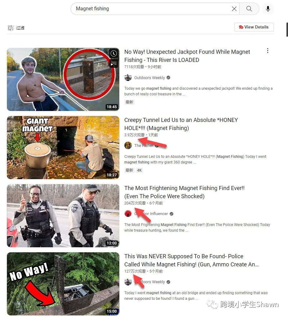 好的,那么接下来我们看下 magnet fishing 这个关键字下,视频的播放量是怎样的?