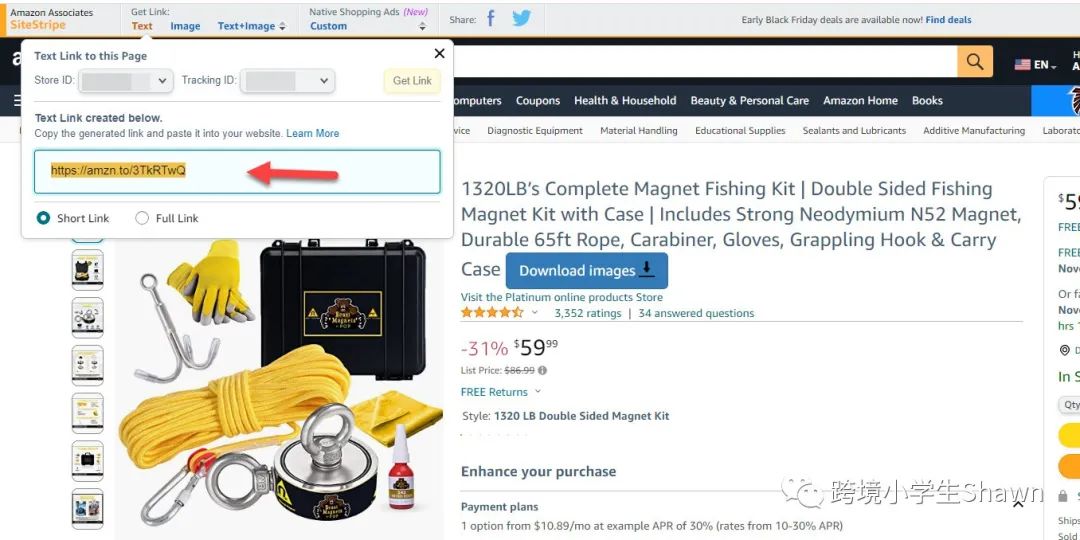 此外,我们还可以申请生成自己的Amazon affiliate链接,给任意符合你频道特性的亚马逊产品导流赚取佣金