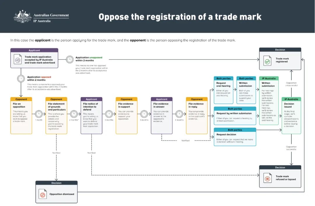 对于正在申请中,尚未获准注册的商标,可以在公告期2个月内向澳大利亚商标局提出异议。