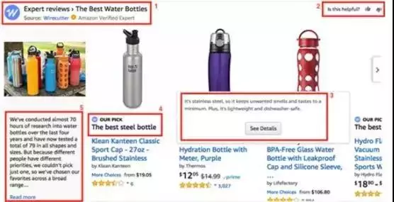 最重要的是测评过的产品下方会出现“More Detail”按钮或者“Add to Cart”的按钮,给Listing带来流量入口。产品最左边除了产品介绍,还带有“Read more”标识,点开后是亚马逊对listing产品的展示页,还有更多review内容的更新。