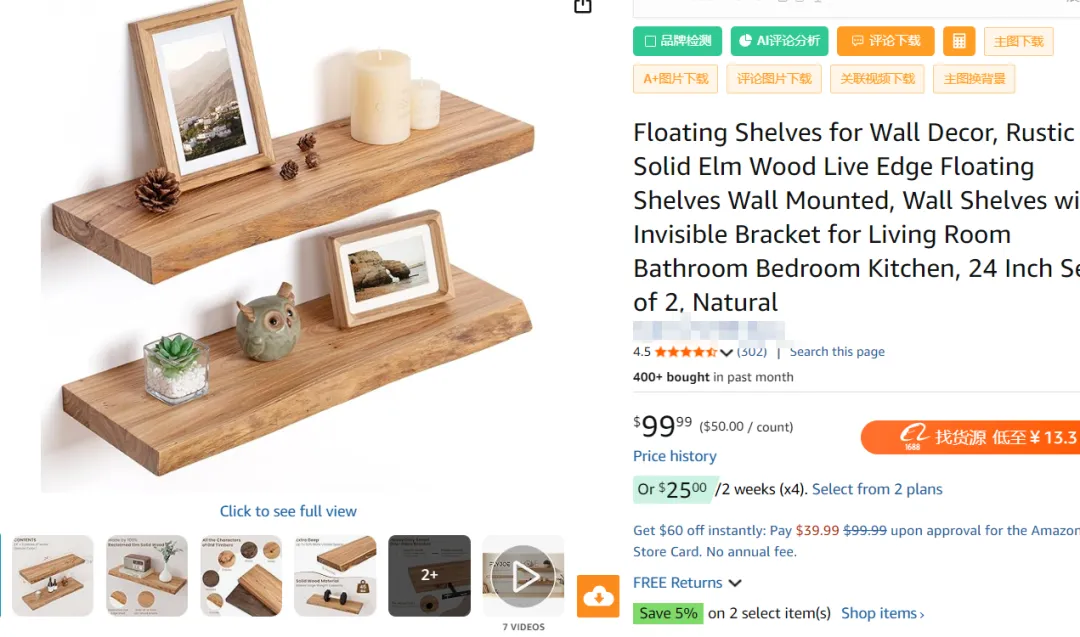 “floating shelves”属于成熟大类目: