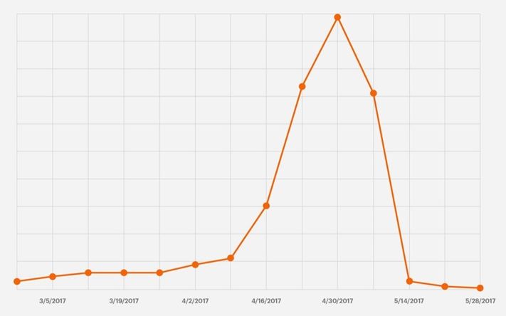 以下是2017年Etsy上包含“母亲节”一词的每周搜索量数据: