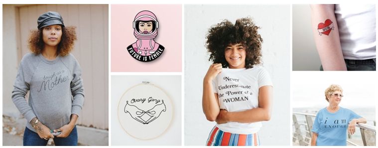 此主题的产品主要承认女性的优势和成就(特别是与母亲相关的),鼓励女性自强,并展示出身为女性的自豪等。