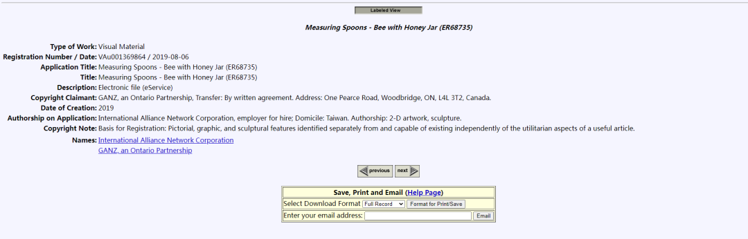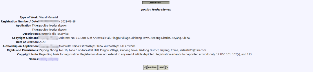 经木瓜关键词定向检索,查询到美国版权家禽喂食器串的美国版权。