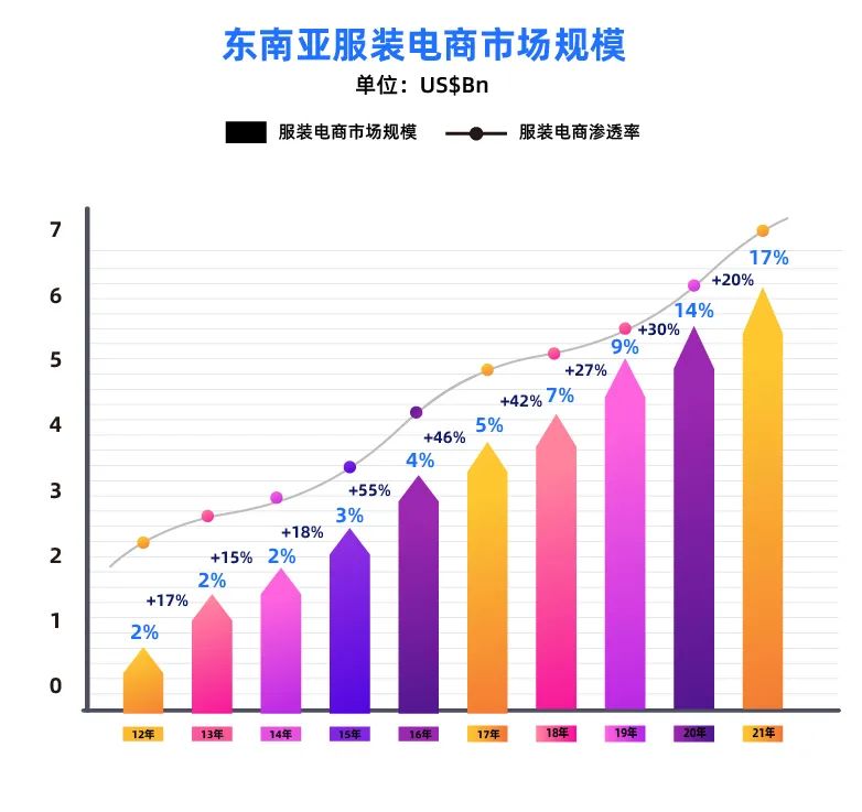 据统计,10年来东南亚服装电商增速领先全球(复合年均增长率达36.4%),疫情期间仍保持高增长。其中东南亚电商服装市场经过10多年的持续增长,2021年市场规模已达420亿美元(约合人民币2810亿元)的体量。那么商家该如何在当前增长阶段中找到经营的侧重,通过差异化策略助力生意增长?