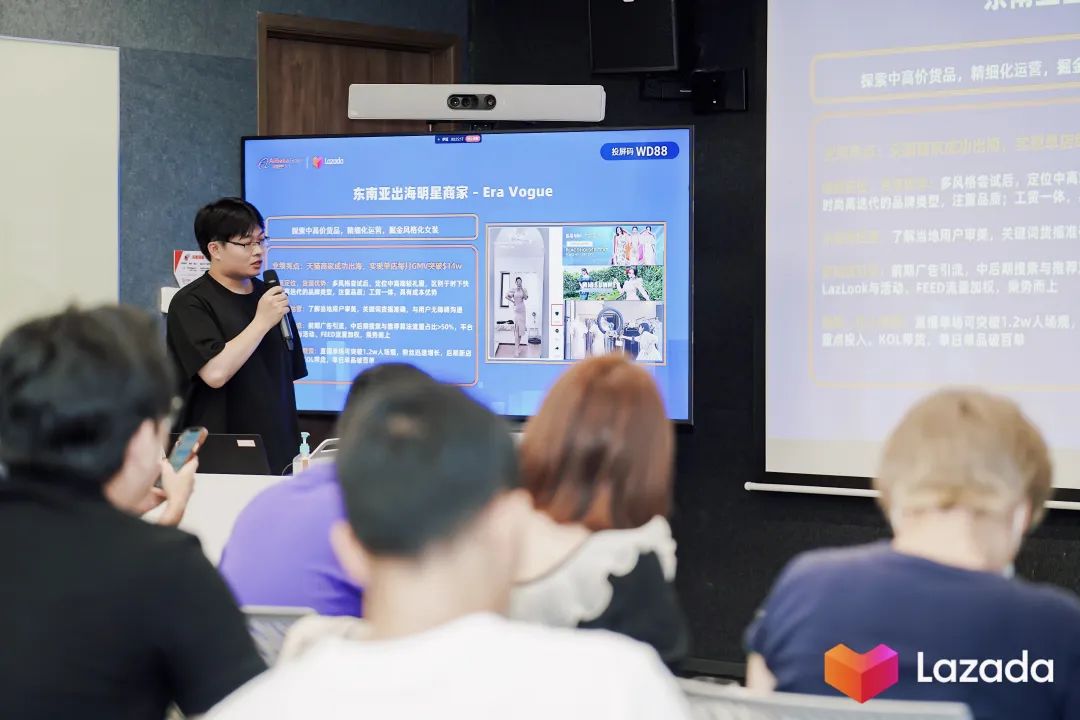 Jason分享了他在Lazada半年成长至单月GMV 14万美元的方法,其一是强调了解目标市场的重要性,他认为风格化的核心是了解当地用户审美,通过小语种运营提升关键词货描准确度,与用户无障碍沟通;流量方面,Jason发现店铺的流量并非来源闪购等坑位,而是来源于推荐和搜索。前期利用Lazada站内超级推广引流,并借助平台扶持进入LazLook风格化专区,配合FEED流量加权解决流量问题;通过直播加强交互式的消费体验,实现深度种草并高效转化,单场直播高达1.2w人观看,帮助其快速积累粉丝。