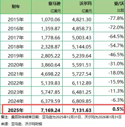 近日,亚马逊与沃尔玛最新财报数据正式出炉,跨境电商行业迎来一则里程碑式消息:亚马逊在刚刚结束的财年实现总收入7169亿美元,而传统零售巨头沃尔玛同期营收为7132亿美元。