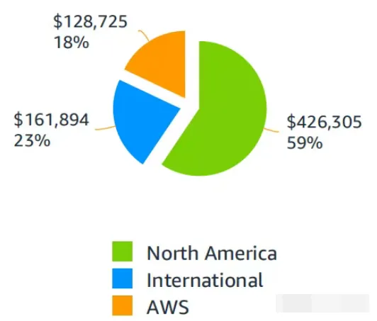 (亚马逊零售板块按收入地区来源饼状图)