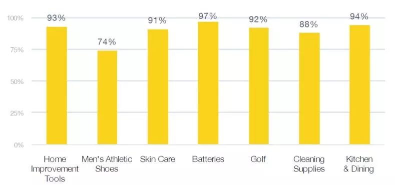 报告显示,在今年第一季度,亚马逊的5个不同品类在美国电商市场的占有率超过了90%。