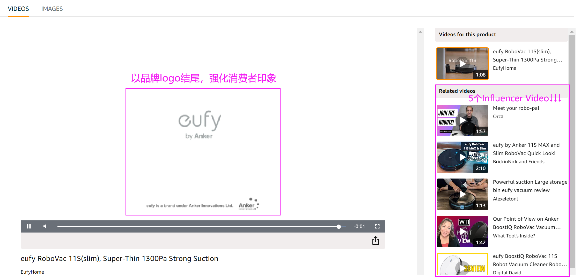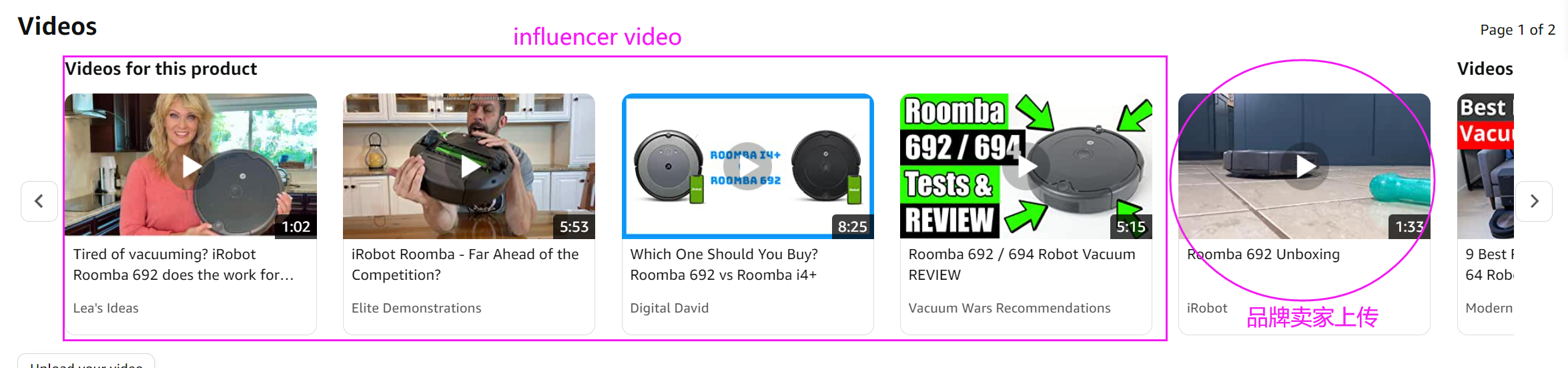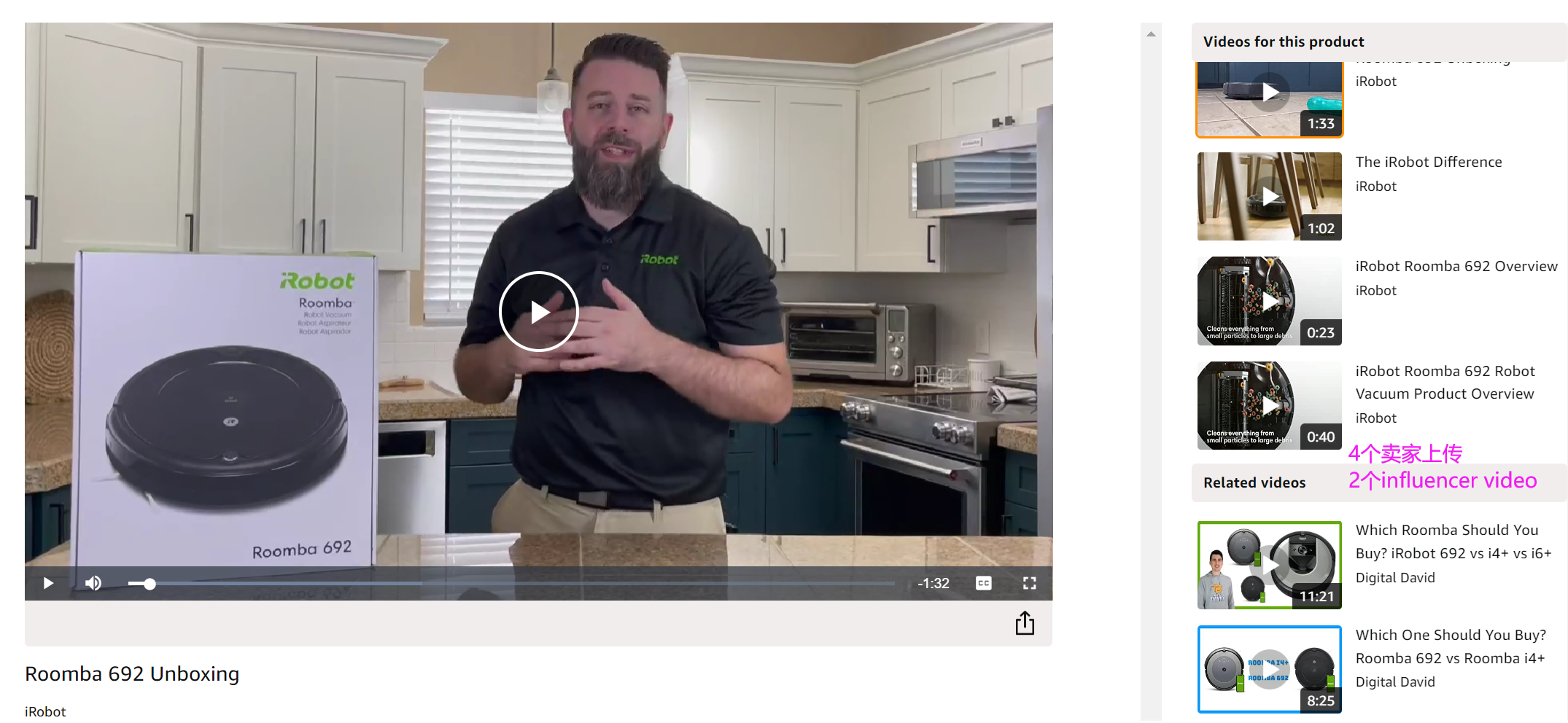 如果品牌卖家有>1个的视频要上传呢?答案也是可以的,但是influencer video就会被等额减少,如下,iRobot自己上传了4个,2个留给红人。