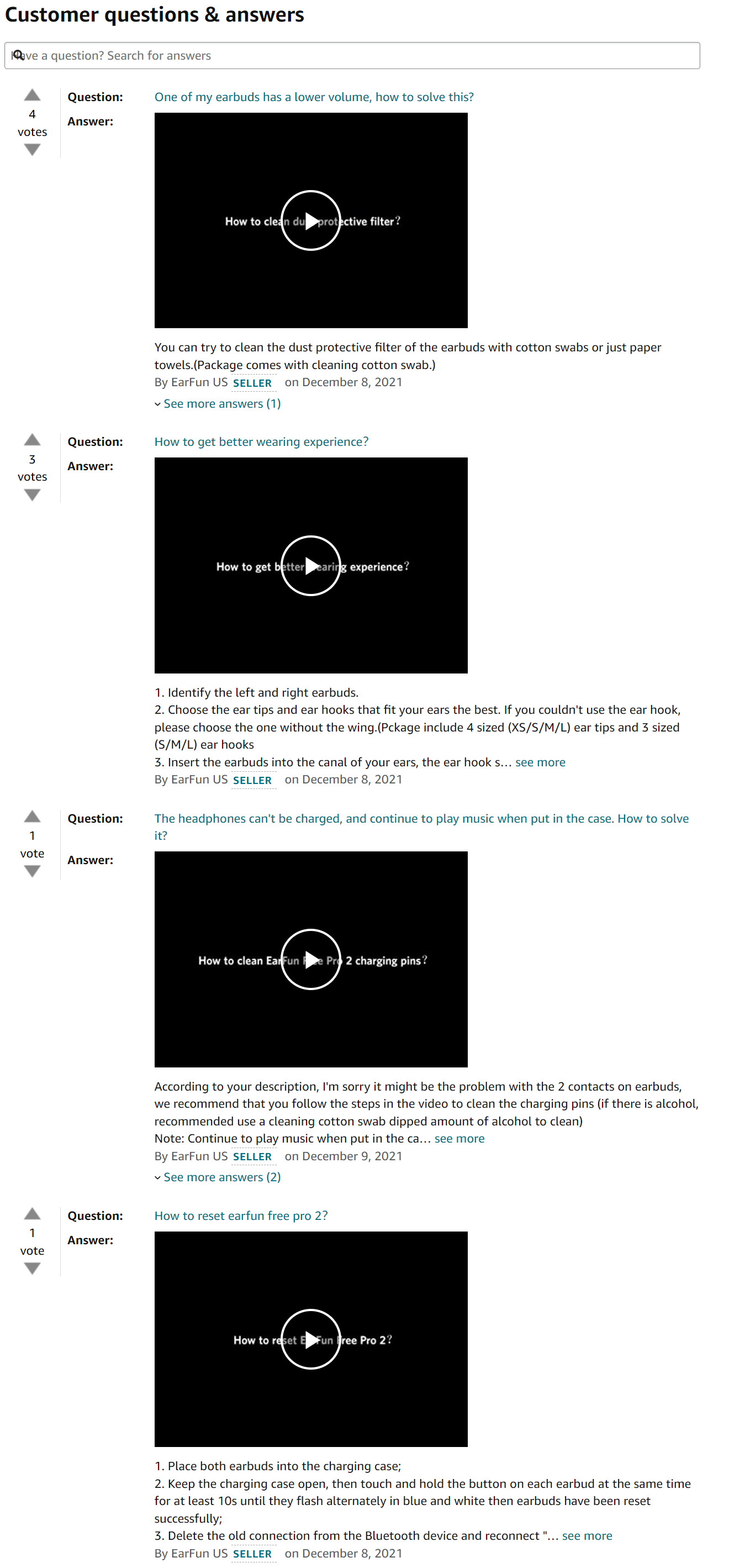 众所周知,也是在去年or前年,QA版块开放了上传视频功能,相较于过去乏味的文字,视频又为转化率添砖加瓦了。参考以下卖家,首页4个QA全部采用视频且置顶,还有专业的封面,试问你的品牌能做到如此细节吗?快快学起来~