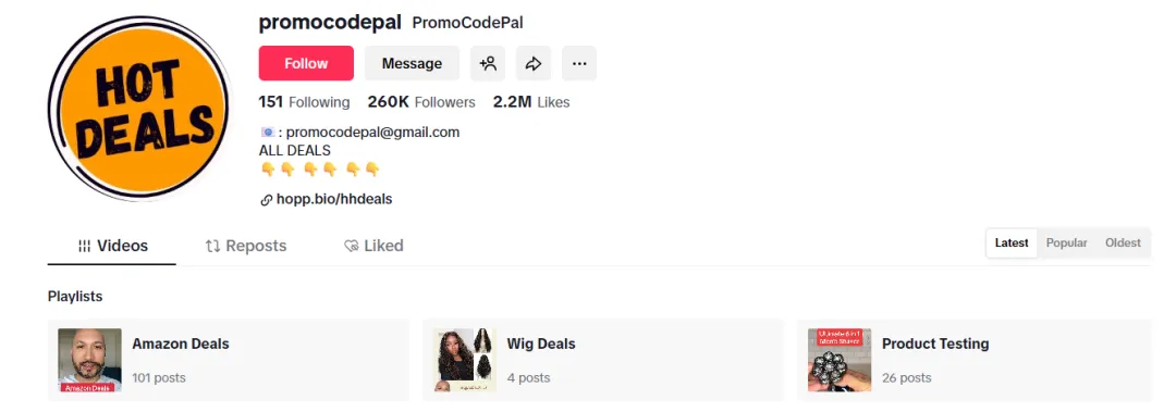 TikTok博主@promocodepal的核心受众的是25-34岁人群(占比45.1%),美国用户占81.86%,刚好匹配Hover的中高端数码消费群体,粉丝真实度达74.37%。