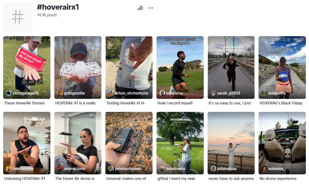 首先,用“社交货币”激发分享欲:不管是@promocodepal的“电影感视频”,还是@x0x0_ash的“趣味日常”,都在暗示用户“用Hover能拍出更优质的社交内容”。很多真实用户自发分享使用场景——从极限运动到家庭聚会,这些UGC内容成了最有力的品牌背书。