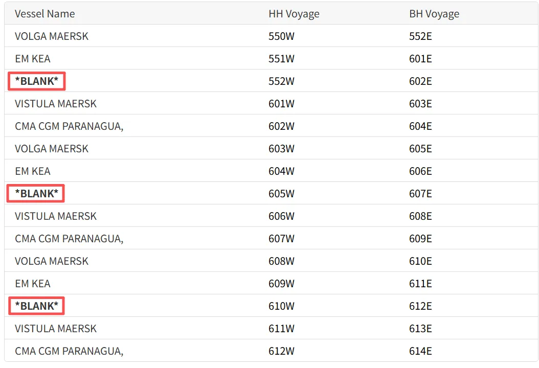 据了解,在圣诞节期间至3月31日之间,每五周暂停一次服务,从安特卫普出发的第552W航次开始。